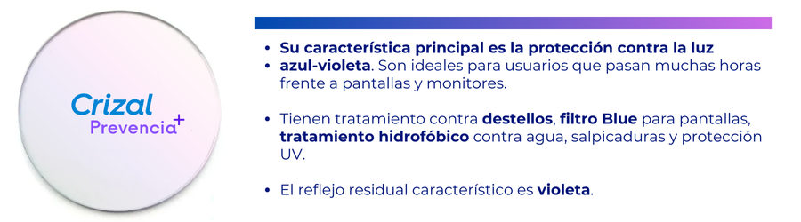 La luz azul-morada o azul-violeta es la que tiene la longitud de onda más corta y, por tanto, es la que más energía tiene. La luz azul-violeta o luz visible de alta energía, puede provocar fatiga y estrés visual, además de la aparición precoz de la DMAE (Degeneración Macular Asociada a la Edad), una de las principales causas de ceguera en el mundo.